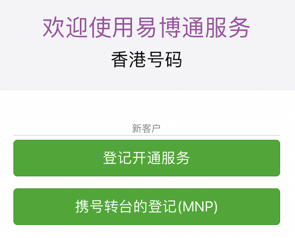 选择香港号码,选择登记开通服务